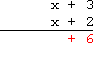 Multiply the bottom +2 by the top +3, and carry down the +6: