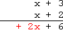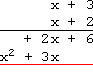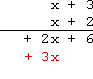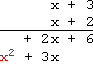 Multiply the bottom x by the top +3, and carry down the +3x: