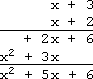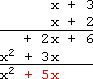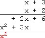 Multiply the bottom +2 by the top x, and carry down the +2x: